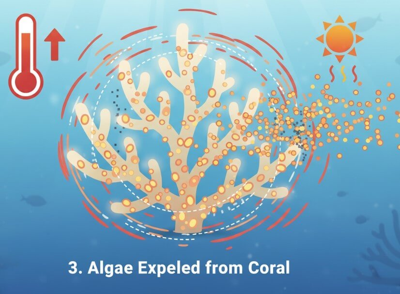 Consequently, the coral animal expels the algae from its tissues to protect itself.